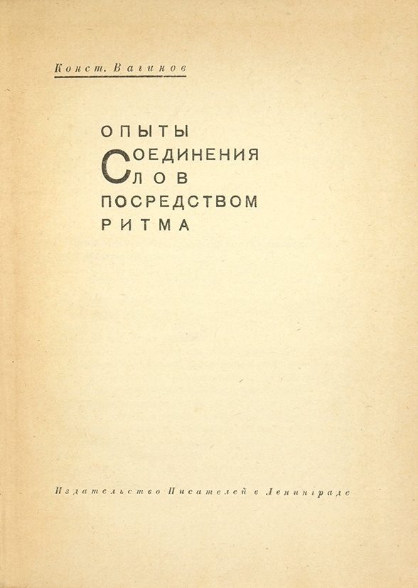 Вагинов, К. Опыты соединения слов посредством ритма / оформ. М. Кирнарского. Л.: Изд-во писателей в Ленинграде, 1931.