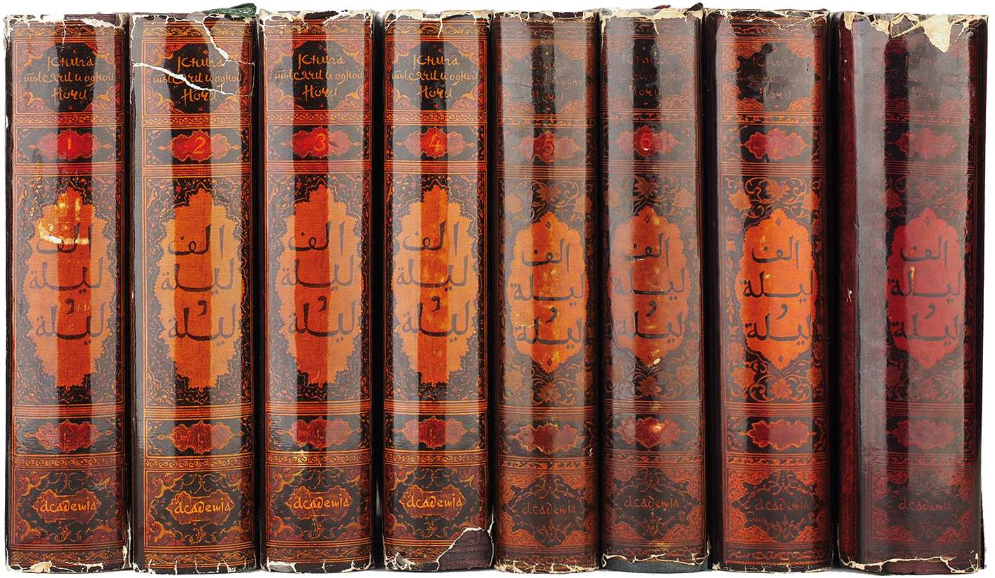 Т. 1: Ночи 1-38. Фронт., LXIV, 571, [4] с., ил. Т. 2: Ночи 39-141. Фронт., 635, [4] с., ил. Т. 3: Ночи 141-270. Фронт., 619, [4] с., ил. Т. 4: Ночи 270-433. Фронт., 640 с., ил. Т. 5: Ночи 434-591. Фронт., 638 с., ил. Т. 6: Ночи 591-719. Фронт., 597, [2] с., ил. Т. 7: Ночи 719-870. Фронт.,743, [4] с., ил. Т. 8: Ночи 871-1001. Фронт., 774, [2] с., ил. 17,6 х 12,6 см. В восьми издательских переплетах с сохранением всех иллюстрированных суперобложек. Потертости и минимальные фрагментарные утраты суперобложек. В остальном - в очень хорошем состоянии.