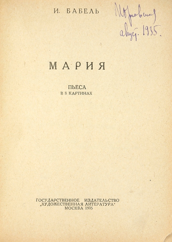 Бабель, И. Мария. Пьеса в 8 картинах. М.: Художественная литература, 1935.