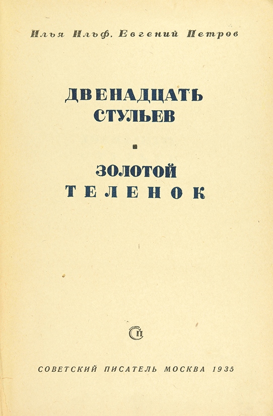 Ильф, И. Петров, Е. Двенадцать стульев. Золотой теленок. М.: Советский писатель, 1935.
