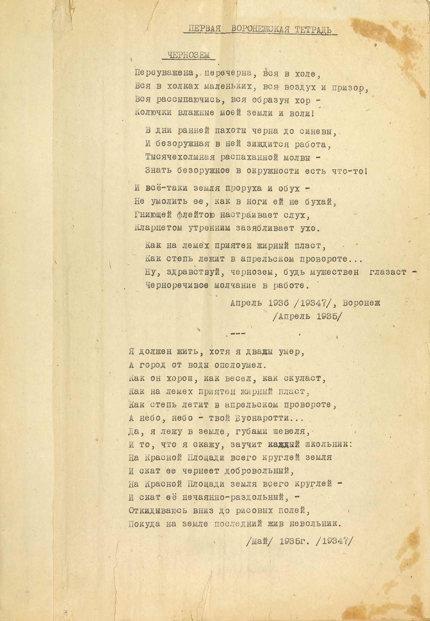 [Машинопись]. Мандельштам, О. Стихи 30-37 гг. Б.м., б.г.