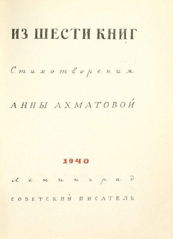 Ахматова, А. Из шести книг / худ. М. Кирнарский. Л.: Советский писатель, 1940.