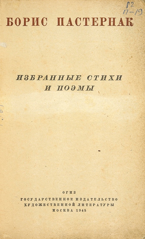 Пастернак, Б. Избранные стихи и поэмы. М.: ОГИЗ, 1945.
