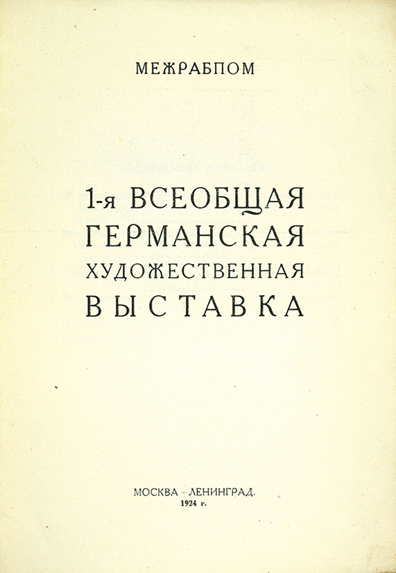 1-я Всеобщая германская художественная выставка. М.-Л.: Межрабпом, 1924.